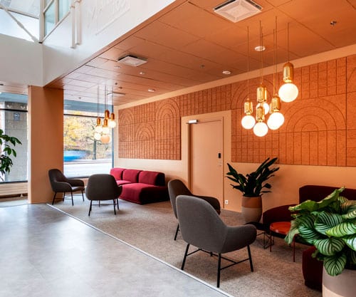 Mansku 105:ssä ystävällinen ja osaava aulapalvelu vastaanottaa vieraat ja auttaa vuokralaisia arkipäivän asioissa. Aula on avoinna arkisin klo 8.00–15.30.