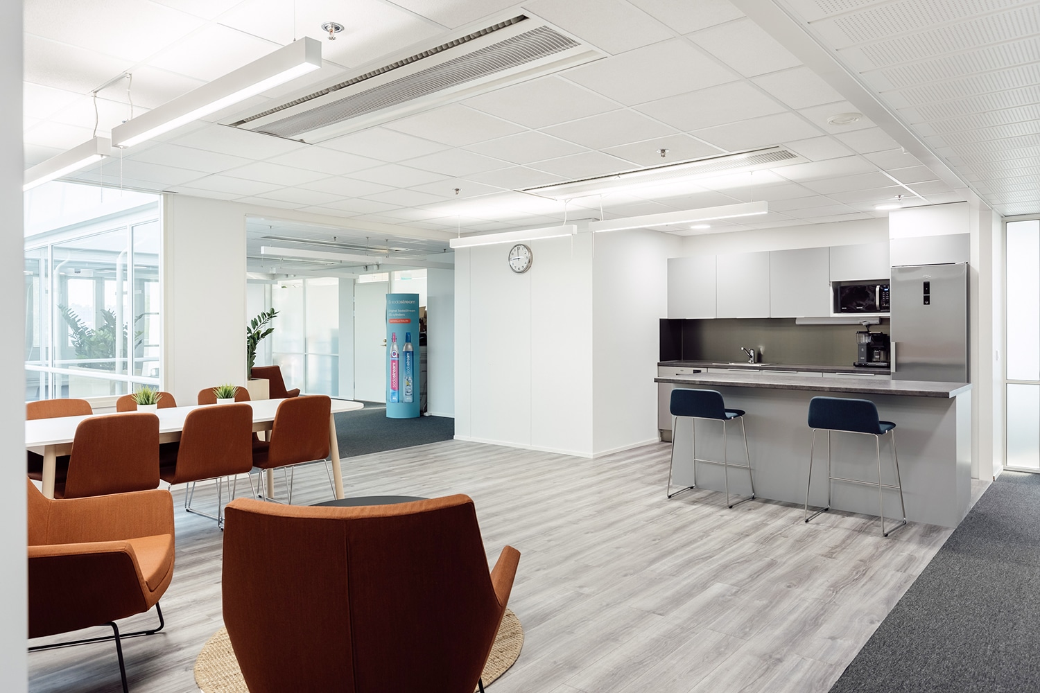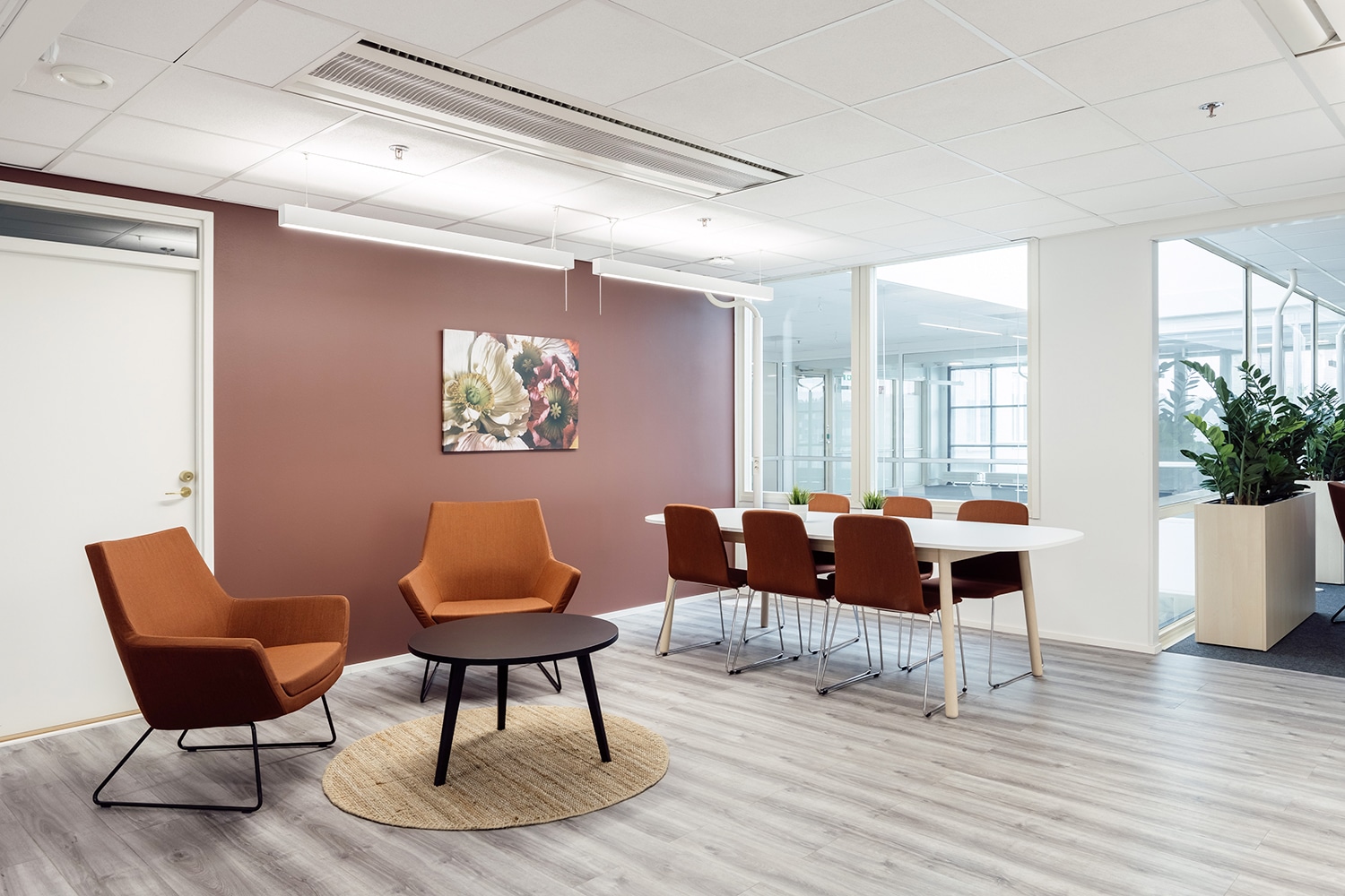 Tyylikkäät edustus- ja kokoustilat sijaitsevat sekä aulakerroksessa että talon ylimmässä kerroksessa. Käytössä on moderni saunaosasto, kokouskabinetti ja kattoterassi.